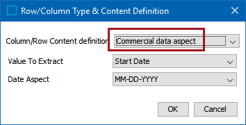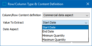 - In the 'Column/Row Content definition' list, select Commercial Data Aspect.