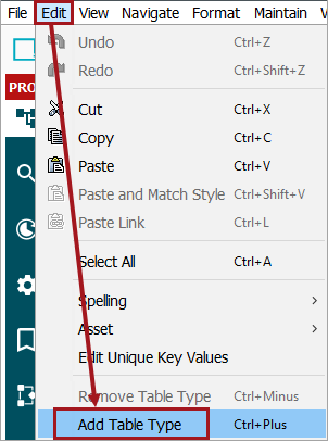 Add Table Type can also be accessed from the STEP Edit menu.