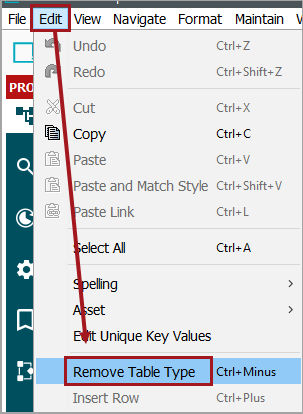 Remove Table Type can also be accessed from the STEP Edit menu.