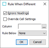 2. Select Override Cell Settings to have the applied rule override any existing rule settings on affected cells. This setting ensures that a horizontal rule will be applied across all columns of a row when the 'Rule When Different' transformation is applied after a Pivot Transformation.