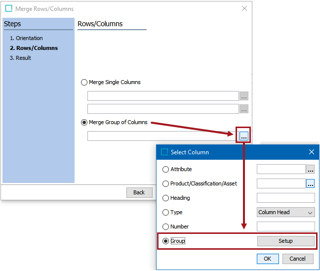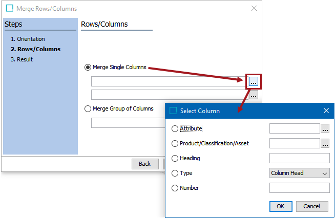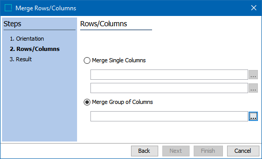 In the Rows/Columns step, two merge options are available—Merge Single Columns and Merge Group of Columns.