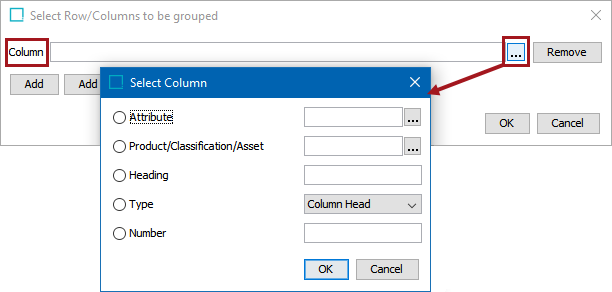 1. On the Select Row/Columns to be grouped dialog, click Add to select individual columns to be grouped.