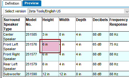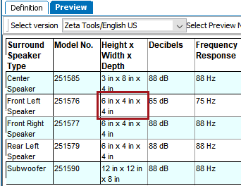 In the following example, the 'Height,' 'Width,' and 'Depth' columns will be merged using the Merge Rows/Columns transformation. Before the transformation is applied, a single pink cell appears in the 'Height' column, and all dimension values appear independently, each in their own column.