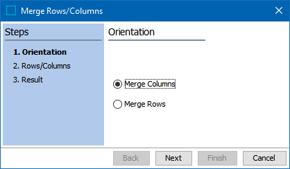 In the Orientation step, specify whether you want to merge columns or rows. Click Next.