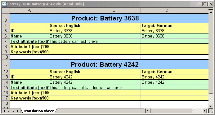 | Translatable Object | Structured Excel Translation | Manual Excel Translation |