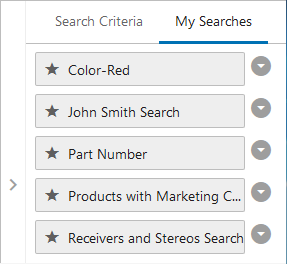 Similarly, if the user first clicks the down arrow, the child component is hidden from display so the user can focus on using the criteria and setting up an Advanced Search.