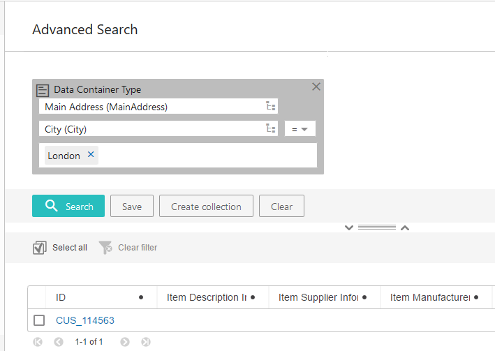 Data Container Type search for [MainAddress] and [Attribute (City)]