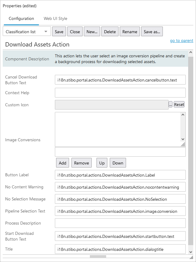 • Custom Icon - This option is if users want to select a special icon for the Download Assets Action.