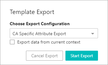 - By default, non-STEPXML configurations export data from the context saved in the export configuration. To overwrite the configuration context and export data from the current Web UI context, check the 'Export data from current context' parameter.