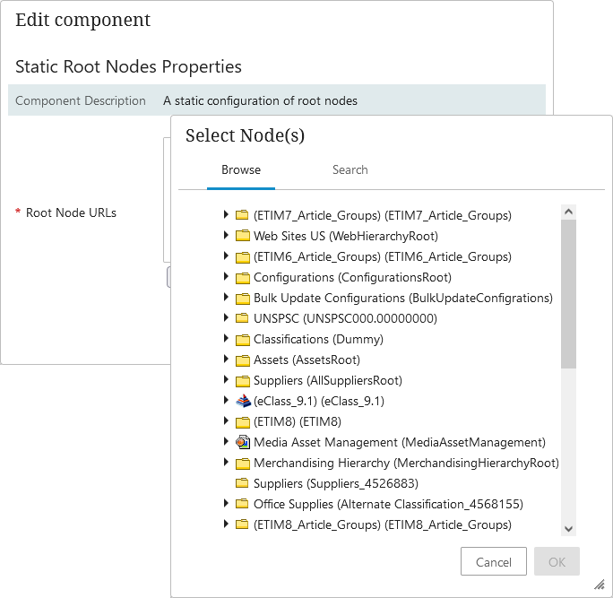 - On Node Picker Dialog Properties under the Root Node Plugin field, select Static Root Node from the dropdown.