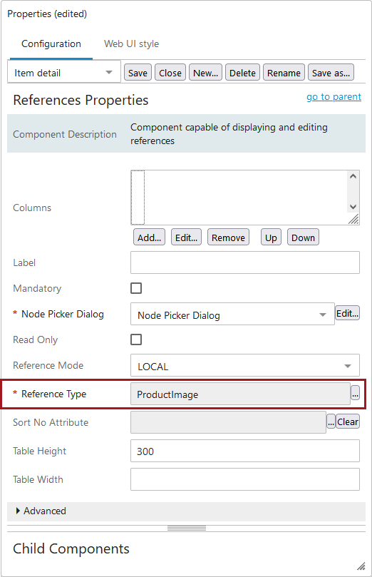 - In the Reference Properties screen, on the Node Picker Dialog field, select the Edit button.