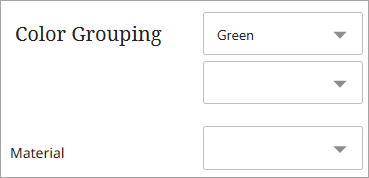 When multiple 'Color' value combinations should trigger the conditional display of the 'Material' attribute, a Grouping Option must be created for each of the combinations.