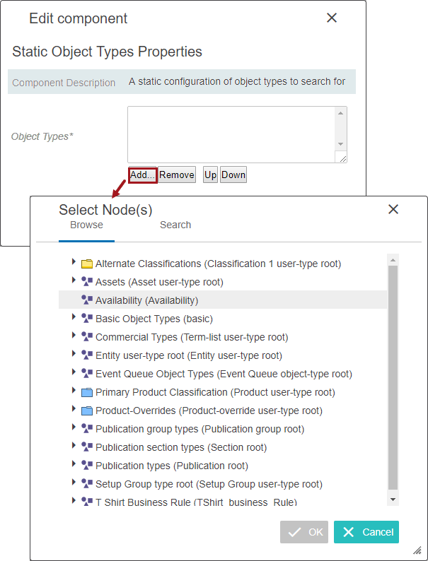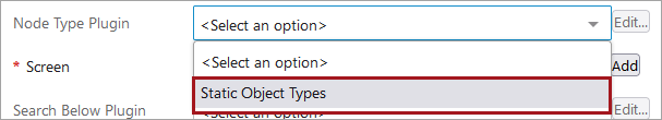 - Static Object Types: Selecting this option and clicking on edit will display the ‘Static Object Type Properties’ screen. Clicking on the ‘Add’ button will display all the object types in STEP. The user has to select the relevant object type and click the Save button.