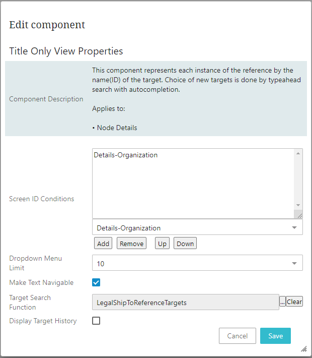 - Dropdown Menu Limit - Specify the maximum number of potential reference targets that are listed in the Globally Configured Reference component dropdown.