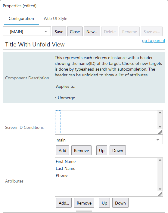 - Attributes - Click Add... and browse or search for the attributes that should be displayed by the corresponding components when unfolded.
