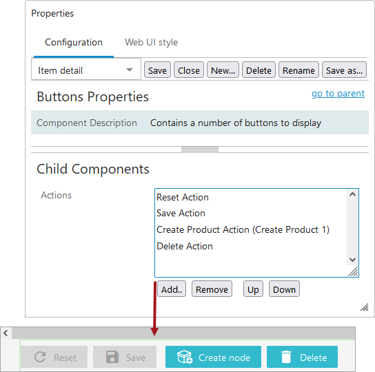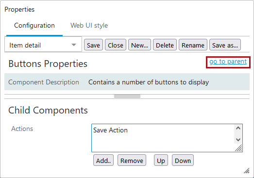 - When all actions are added, click go to parent to navigate back to Node Details Properties.