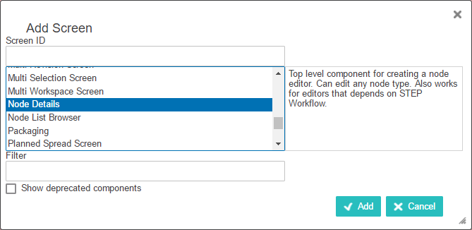 Note: The Node Details screen ID is used to simplify the example. The screen ID should have a descriptive name that better describes the purpose / usage of the screen and is easily identifiable.