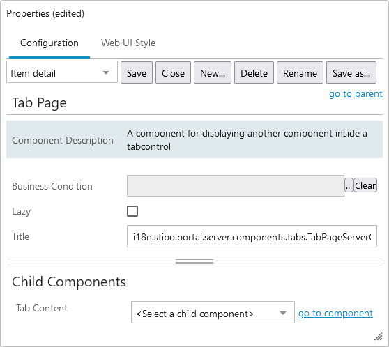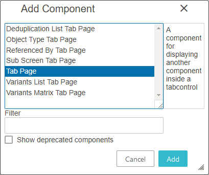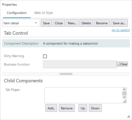 Note: Tab Page component is available under Tab Control. For more information, refer to the Tab Pages topic in the Web User Interfaces documentation.
