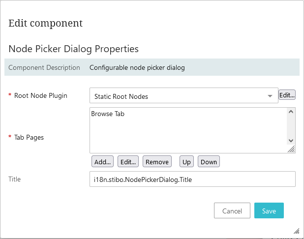 The Node Picker Dialog parameter is available on some components in Web UI. It allows the admin to define the nodes that are presented for selection in the dialog and also allows the admin to determine how the nodes are selectable.