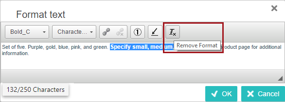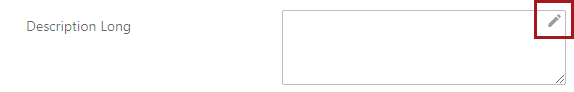 Users can identify when an attribute value field is using an RTE based on the icon that displays on the right side of the field. Click the edit icon to display the 'Format text' dialog.