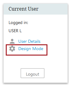Entering design mode can only be done by privileged users. These users can enter design mode by clicking on a launch button within Web UI or by entering a specific design mode URL into a web browser. Both methods are explained below.