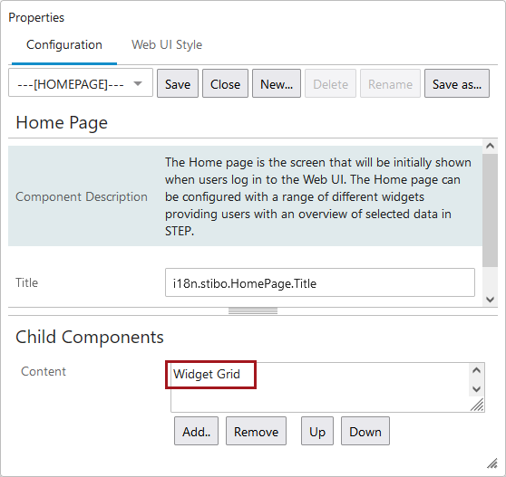 1. Go to ---[HOMEPAGE]--- > Child Components > Content > double click on Widget Grid.