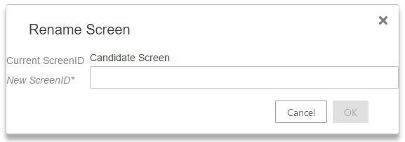 - A 'Rename screen' dialog appears. Enter the new name for the screen ID.