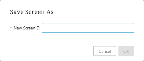 - When the 'Save screen as' dialog appears, enter an ID for the new screen. Make it descriptive so that it can be easily identifiable when a user looks through Screen IDs to make a selection.