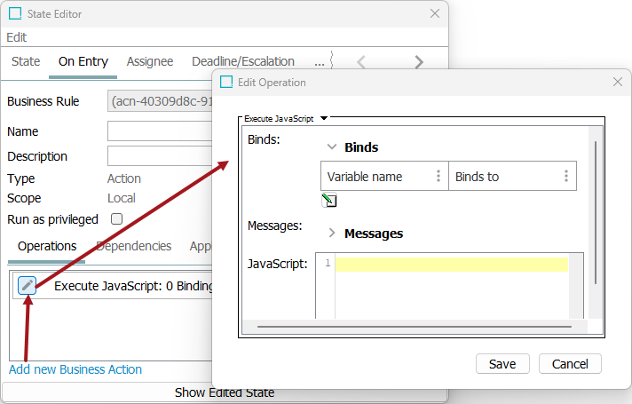 While the assignee always will be set using the option selected on the State Editor's Assignee tab when entering a state, it is sometimes necessary to overwrite the assignee using a business action configured to run in the State Editor on the On Entry tab.