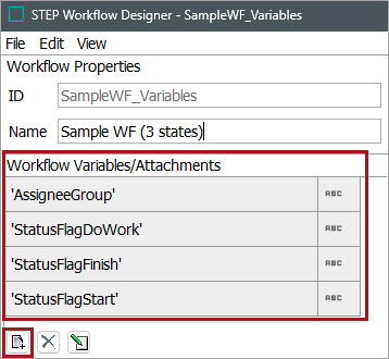 1. Create a workflow variable to hold the status flag using the button. As status flags are state-specific, it is recommended to create one workflow variable for each state in the workflow that will have a status flag determined by some factor other than entering the state, so that when the determining factor is evaluated, the resulting flag to be applied at any given state can be stored for that state.