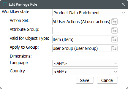 Once the state has been chosen for which the privileges should be applied, it is then possible to set up the various options to set the privileges for that particular state. Complete configuration information for workflow privilege rules is provided in the Editing Privilege Rules topic of the System Setup documentation.