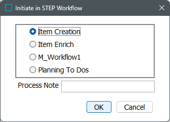 1. In the dialog that appears, select which workflow to initiate the object into. Only workflows that the object is valid for display, and any workflows that are disabled indicate that the object has already been initiated into those particular workflows.