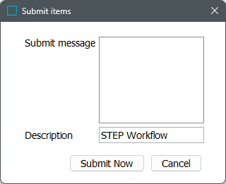 4. On the Submit Items dialog, add a comment if desired, which will be recorded in the Notes field on the State Log tab of the object. Click the Submit Now button to complete the task, or click Cancel to return to the STEP Workflow Items editor.