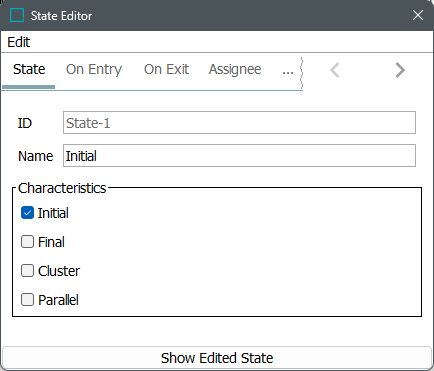 Change the name or characteristics of the state. Refer to State Characteristics in Workflows.
