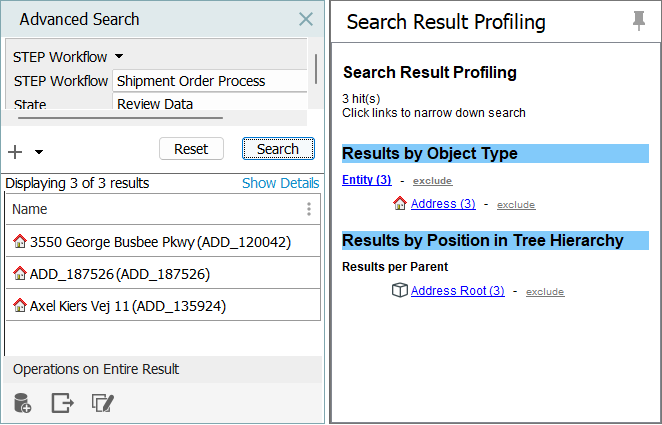 If the search is not as refined as needed, add additional search criteria by clicking the + button, and further filter the results. For example, the workflow criteria could be combined with the Search Below criteria to isolate objects in a particular category.