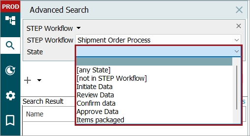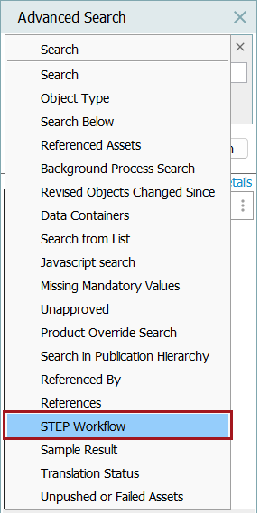 The STEP Workflow Advanced Search criteria lets a user search for: