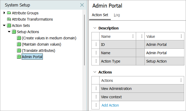 The 'Admin Portal' setup action set includes the required actions.
