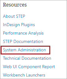Clicking the System Administration link from the Resources section of the Start Page