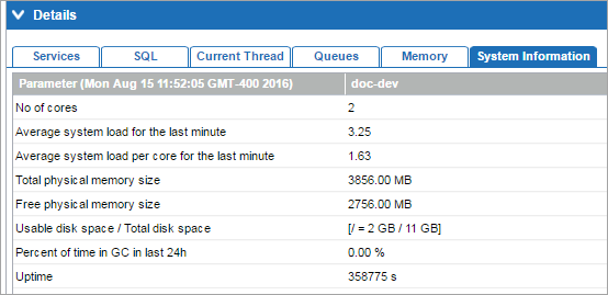 The Current Thread information is recommended exclusively for use by Stibo Systems Technical Support and is therefore not described.