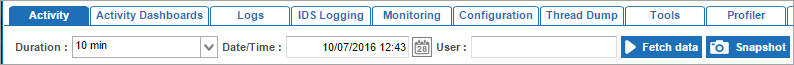 Before gathering data for the tab, it is important to consider what information is required, and to use the provided parameters to specify this. Once the query parameters have been specified, the Fetch data and Snapshot buttons can be used to access the information from the system.