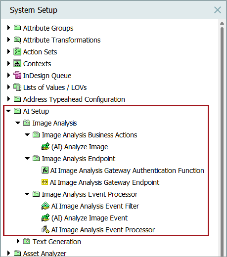 2. Expand the Image Analysis folder and its subsequent folders. Each of these subfolders together contain, business rules, a Generation Gateway Endpoint, an authentication function for the generation gateway endpoint, and an Event Processor.