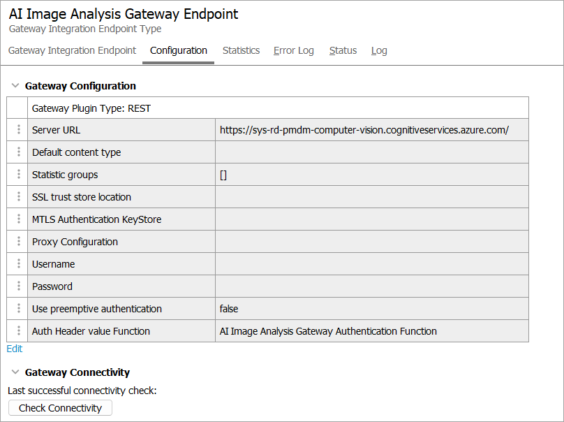 3. Starting with the Image Analysis Endpoint folder, configure a REST AI Image Analysis Gateway Endpoint as needed. For more information on how to configure Generation Gateway Endpoints, refer to the Configuring a Gateway Integration Endpoint topic in the Data Exchange documentation.