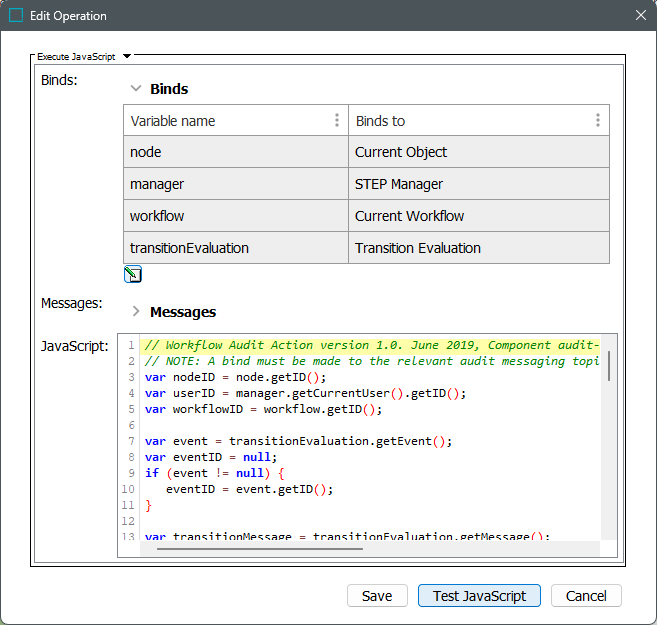 // Workflow Audit Action version 1.0. June 2019, Component audit-messaging