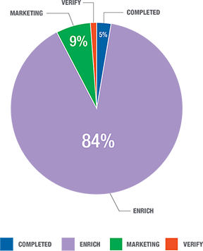 After the information lands in the external repository, the information will likely continue its way downstream into a BI tool, such as Tableau or Qlik. Within these tools, users can visually digest the extracted information in the form of graphics and charts, such as the pie chart below. This example chart details the percentage of objects in specified workflow states at a given moment in time.