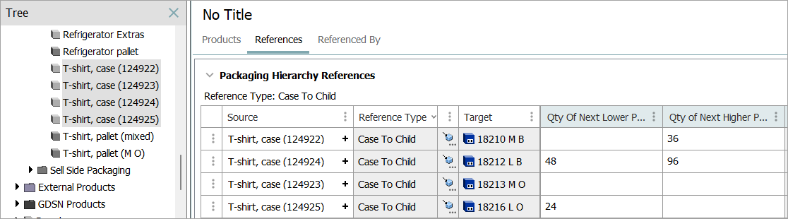 Consider the following values for the attributes 'Qty of Next Lower Package' and 'Qty of Next Higher Package' on the Case to Child reference.