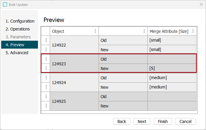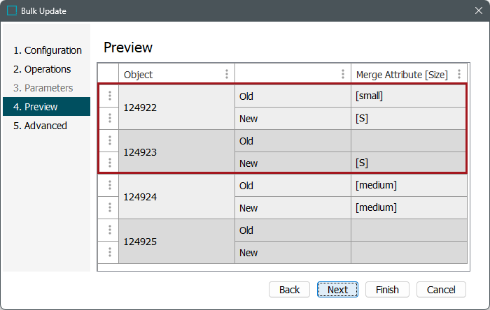 - Notice that two values changed in this scenario: object 124922 had its value overwritten since a value existed for the source, and object 124923 was overwritten since the source object had a value and the target value was blank. Objects 124924 and 124925 both get updated values that are the same as before, so essentially they are not overwritten.