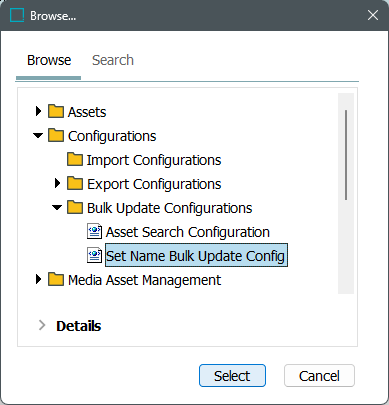 ) to display the configuration selection dialog. Use the Browse or Search tab to select the relevant configuration and click the Select button.