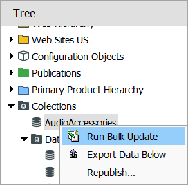 Run on all objects in a single collection or multiple collections: In Tree, select one or more collections, right-click and choose Run Bulk Update.