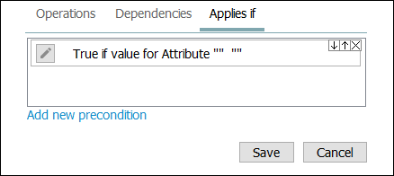 To add a new condition, click the Add new precondition link. A new row is added to the list.