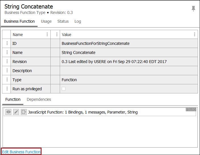 For a business function, click the Edit Business Function link on the Business Rule tab.